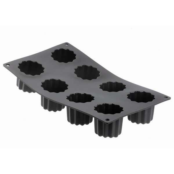 Moul’flex de 8 empreintes parfaites pour la réalisation de Canelés bordelais traditionnels.