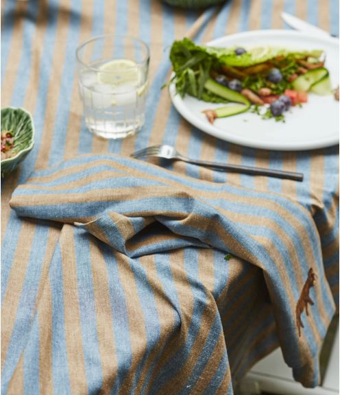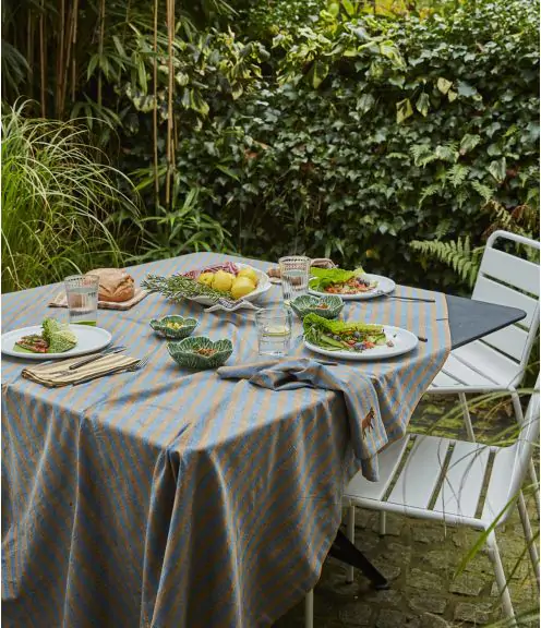 Mixez la nappe avec les serviettes pour produire un joyeux mélange éclectique et vivant…comme un repas de famille.