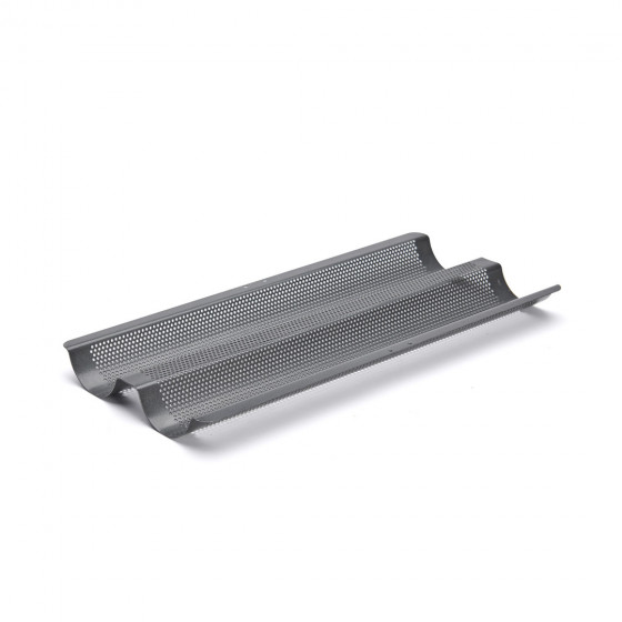 Plaque de cuisson perforée en acier revêtu pour 2 baguettes.