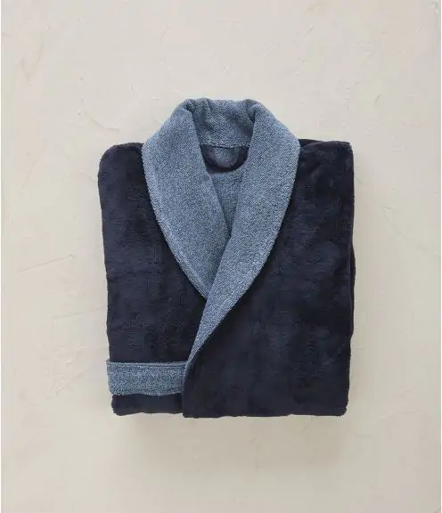 Robe de chambre bi-matière 43% coton (éponge) et 57% polyester (polaire)